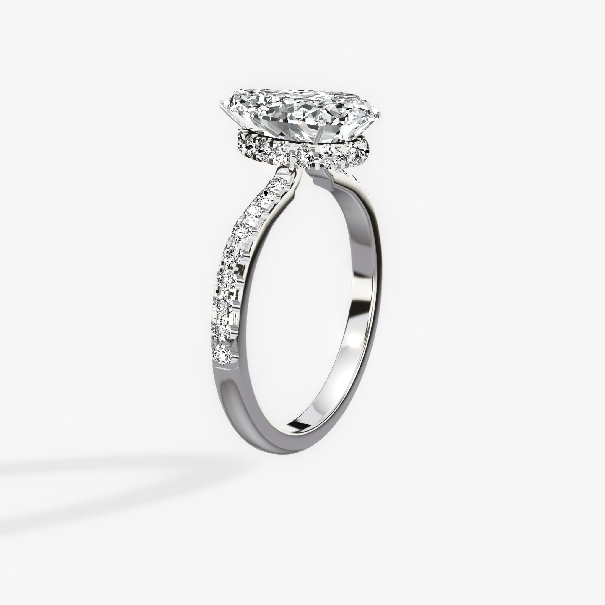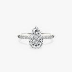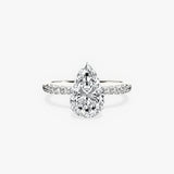 Fortuna Hidden Halo Pear Engagement Ring in White Gold