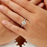 Introducing the stunning Fortuna Hidden Halo Pear Engagement Ring in White Gold. This vintage-inspired piece promises to be a truly unique addition to your jewelry collection. The intricate design of the under gallery is crafted to showcase the center diamond, ensuring that it catches the eye and captures the heart. A glistening center diamond is complemented by a hidden halo and pave setting along the shank, creating a graceful curve that elegantly leads up to the center diamond. This exquisite ring is guaranteed to be a precious and enchanting symbol of your love.