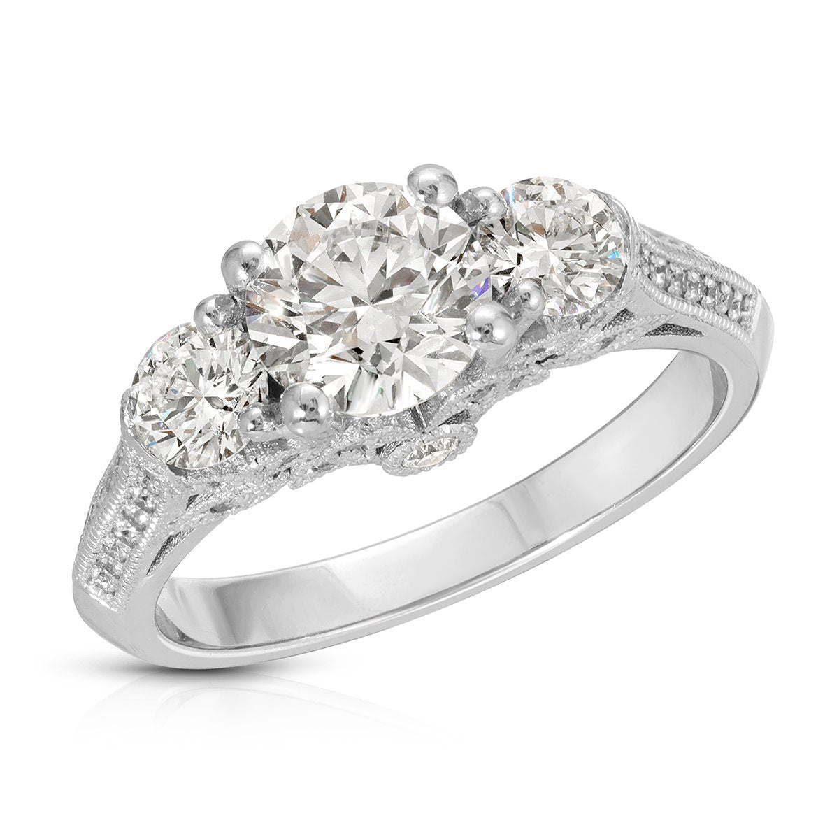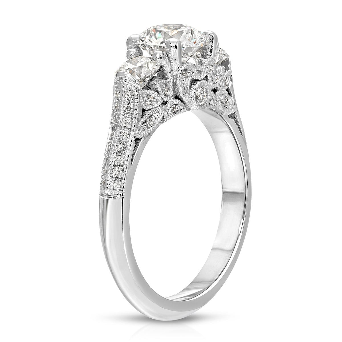 Heirloom Three Stone 1.01 ct Round Engagement Ring in White Gold - The Better Diamonds